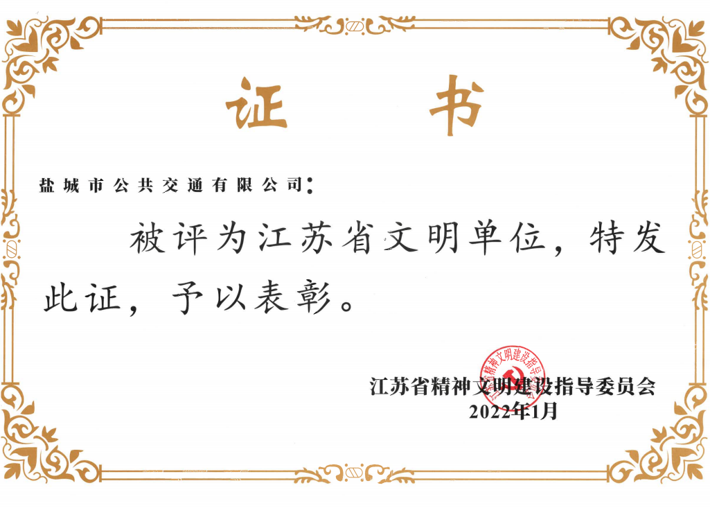 - 2022年4月公司被授予2021年度鹽城市文明創(chuàng)建工作先進(jìn)集體榮譽(yù)稱號
